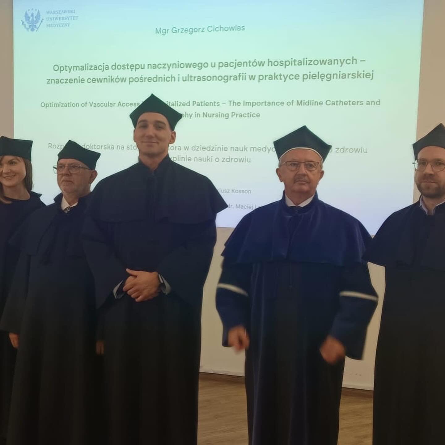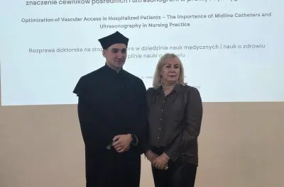 Z przyjemnością informujemy, że mgr Grzegorz Cichowlas, Koordynator Świadczeń Pielęgniarskich w Oddziale Anestezjologii i Intensywnej Terapii naszego Szpitala oraz asystent dydaktyczny w Zakładzie Nauczania Anestezjologii i Intensywnej Terapii Warszawskiego Uniwersytetu Medycznego, obronił pracę doktorską pt.: „Optymalizacja dostępu naczyniowego u pacjentów hospitalizowanych – znaczenie cewników pośrednich i ultrasonografii w praktyce pielęgniarskiej”.