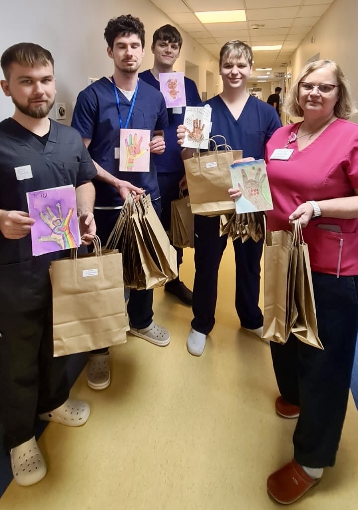 W ramach inicjatywy, przygotowanej przez Zespół Kontroli Zakażeń Szpitalnych, pacjenci otrzymali upominki zawierające kartki z życzeniami oraz prace plastyczne przygotowane przez dzieci z zaprzyjaźnionego przedszkola. Prace – w formie dłoni i misiów – były wyrazem troski, pamięci i życzliwości wobec osób przebywających w szpitalu, a jednocześnie nawiązywały do idei czystych rąk jako elementu bezpieczeństwa pacjenta.